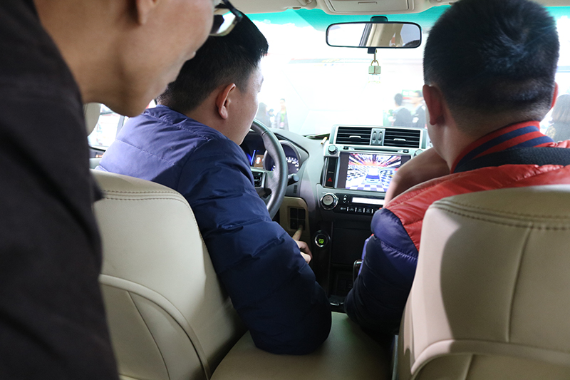 道可視這次展會(huì)主推的超清360度全景影像系統(tǒng),其清晰度達(dá)到1080P。不僅僅是清晰度的提升,更解決了因?yàn)橐挂暷芰Σ蛔愣_車主的夜間泊車、倒車難題;四路攝像頭實(shí)時(shí)錄像,智能震動(dòng)鎖定技術(shù),3D全景泊車,24小時(shí)不間斷泊車監(jiān)控等功能吸引了一大批客商的駐足參觀,在展車體驗(yàn)過程中對(duì)我們?nèi)诵曰腢I交互設(shè)計(jì)和便捷的功能操作贊賞有加。