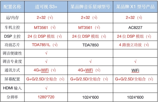 那么,道可視S3+音樂車機(jī)到底有什么料呢?空口無憑,小編直接拿它和業(yè)內(nèi)同屬高端配置的其他品牌產(chǎn)品進(jìn)行對比。