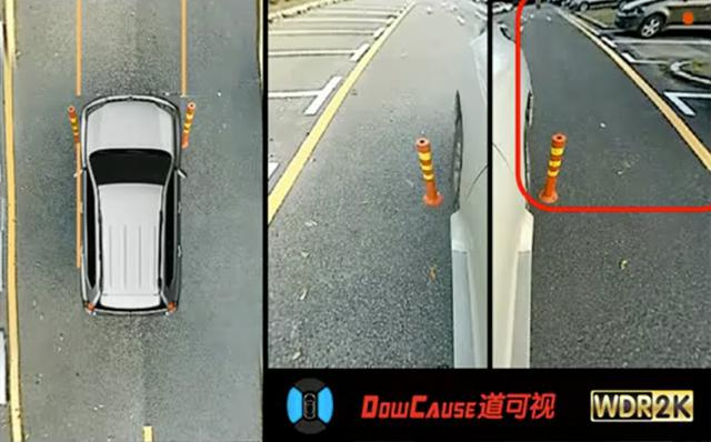 道可視通過左右視圖以立體視圖的方式呈現(xiàn),非常直觀的展示了車身左右兩側(cè)與障礙物的距離,有效解決了廣角視圖畸變等問題,真實的還原了實際路況,幫助駕駛員輕松掌握車輛左右限寬距離。