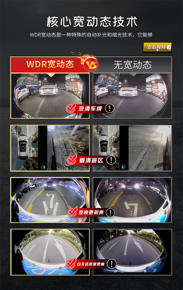 除了“6D”之外,道可視還將4個攝像頭分辨率提升至2560*1440,同時“WDR寬動態(tài)”影像處理技術(shù)的加持,讓道可視360°全景面對光照不理想的“極端”情況下,也能夠做到游刃有余。