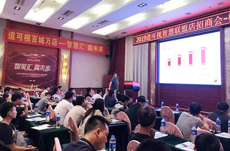 隨后,針對(duì)于大家所關(guān)注的“智慧聯(lián)盟店”,道可視大區(qū)經(jīng)理伍招權(quán)進(jìn)行了重點(diǎn)介紹,他從市場(chǎng)體系、加盟方案、銷售模式和加盟優(yōu)勢(shì)四個(gè)維度進(jìn)行了詳細(xì)宣講,引起現(xiàn)場(chǎng)終端門(mén)店的極大興趣。
