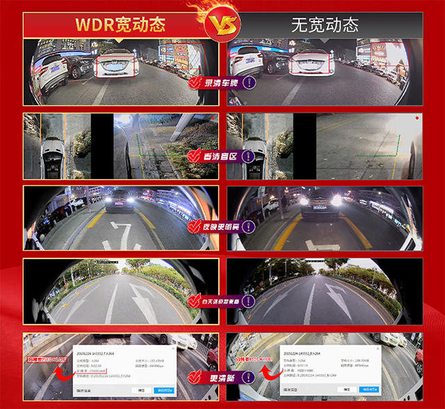 道可視創(chuàng)新性地將WDR寬動(dòng)態(tài)技術(shù)植入360°全景行車輔助系統(tǒng)中,能夠很好地抑制強(qiáng)光的反射和干擾,很好地解決了強(qiáng)光環(huán)境下的爆光、眩光等問題,避免汽車大燈照射下造成影像顯示及記錄“一團(tuán)白色”的情況,能夠清晰的記錄及看清車牌和路況。