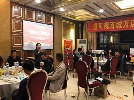 道可視區(qū)域經(jīng)理雷玉杰隨后上臺便為現(xiàn)場來賓,帶來了更詳細的聯(lián)盟店招商與產品培訓。