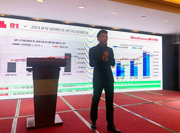 在致辭中,馮曙對(duì)2018年道可視的成績進(jìn)行了回顧:“在渠道方面,2018年道可視會(huì)員店體系已經(jīng)基本完善,幾乎覆蓋了全國所有省份,在家人們的共同努力下,2018年我們共同開發(fā)了超過2000家的會(huì)員店;在高級(jí)顧問蔡老師、劉老師的親力支持下,在家人們的親力配合下,完成了會(huì)員店的系統(tǒng)培訓(xùn)工作。此外公司還引入了微信紅包、銷售PK、服務(wù)PK等競爭機(jī)制,極大地提升了會(huì)員店的銷售積極性,培養(yǎng)了道可視360°全景的銷售氛圍,推動(dòng)了電子質(zhì)保卡體系的不斷完善。