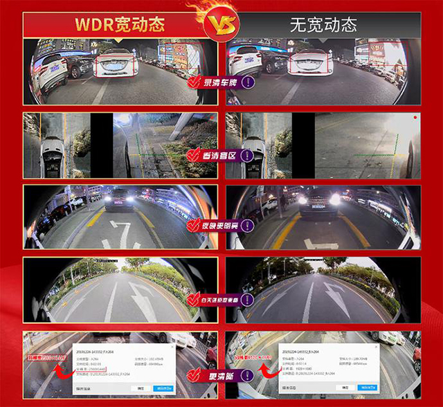 在實測中,我們將有WDR和無WDR的視頻做了對比,對比發(fā)現(xiàn),有WDR的視頻里,車牌更清晰,盲區(qū)更清晰,夜晚更明亮,畫質更細膩,有效地解決了生活中攝像頭遇到汽車大燈等強光時,畫面曝光、眩光等問題。